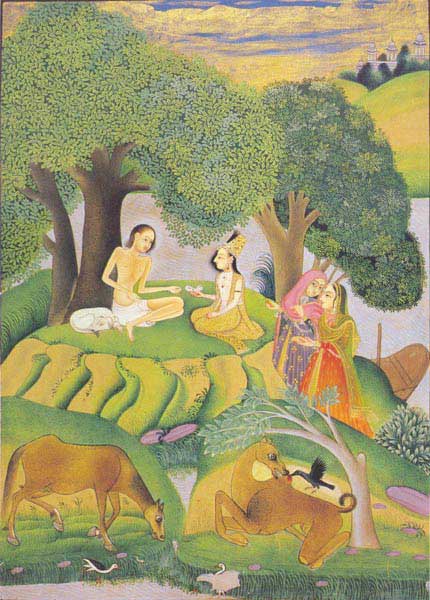 Charan Kanya Painting / Zaverchand meghani writes the poem where heerbai challenges the lion for a baby cow.